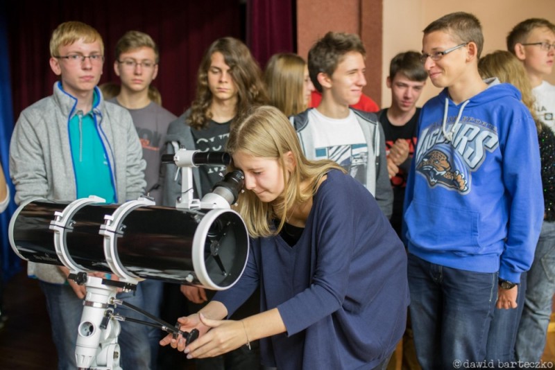 to kolejne zajęcia w ramach cyklu "Spotkania z astronomią" prowadzone przez ASTROHUNTERS.PL. Uczniowie przebyli kosmiczną podróż w przeszłość. Prześledzili historię powstania naszej planety, a także niezwykłych ciał niebieskich jak planetoidy czy komety, które powstały w procesie formowania Układu Słonecznego. Na zakończenie odbyły się warsztaty połączone z obserwacjami powierzchni Słońca przy użyciu specjalistycznych teleskopów. Dużym zainteresowaniem cieszył się sprzęt, z którym prelegenci pojawili się w szkole, m.in. 6-calowy teleskop Newtona na montażu paralaktycznym oraz lornetka astronomiczna. – Dla mnie osobiście była to sentymentalna wizyta, gdyż spędziłem w murach tego liceum cztery wspaniałe lata, poznałem wielu niesamowitych ludzi, spotkałem nauczycieli, którzy swoją pracą potrafili „zaszczepić” w młodych ludziach pasję i rozbudzić ciekawość świata. Bardzo dziękujemy za zaproszenie i z radością czekamy na kolejne – podsumował lekcję jeden z prelegentów – Michał Witek.