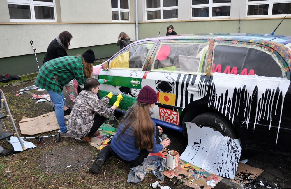 Spotkanie przebiegało w poważnej atmosferze, ale było bardzo inspirujące i potwierdzało ogromne zainteresowanie pracą policji. Uczniowie mieli bowiem wiele pytań – czasem trudnych, czasem kontrowersyjnych. Ze wszystkimi komendant sobie poradził bez problemu. To, co wydarzyło się na zakończenie spotkania, mogło jednak niejednego funkcjonariusza zbić z tropu. Wraz z życzeniami świątecznymi Krzysztof Justyński otrzymał bowiem od uczniów „Plastyka" oryginalny prezent w postaci radiowozu policyjnego w bardzo nietypowych barwach. – Ten „nowy model" radiowozu niech będzie symbolem prawdziwej solidarności społecznej, ponieważ ma swoją „lewicę" i „prawicę", jako że każda strona karoserii prezentuje odmienne barwy i wzory – powiedziała dyrektor szkoły Anna Białek, wręczając symboliczne kluczyki. „Radiowóz" jako dar uczniów dla policjantów był oczywiście żartem. Komendant Justyński na szczęście wykazał się sporym poczuciem humoru i nikogo nie aresztował. Nowa „fura" policji to skoda octavia combi, 1,8 T, 150 KM, przebieg: 340 tys. km. Wcześniej służyła w policji autostradowej Komendy Wojewódzkiej Policji w Katowicach. Do wodzisławskiego „Plastyka" została wypożyczona z OSP Biertułtowy celem „upiększenia". – Teraz, kiedy samochód otrzymał nowy wygląd, rozważamy, czy nie wystawić go na aukcję, z której dochód trafiłby na cel społeczny – podkreśla jeden z pomysłodawców akcji a zarazem prezes OSP Dawid Topol. Zobacz co uczniowie „Plastyka" zmalowali na „radiowozie" – zapraszamy do galerii