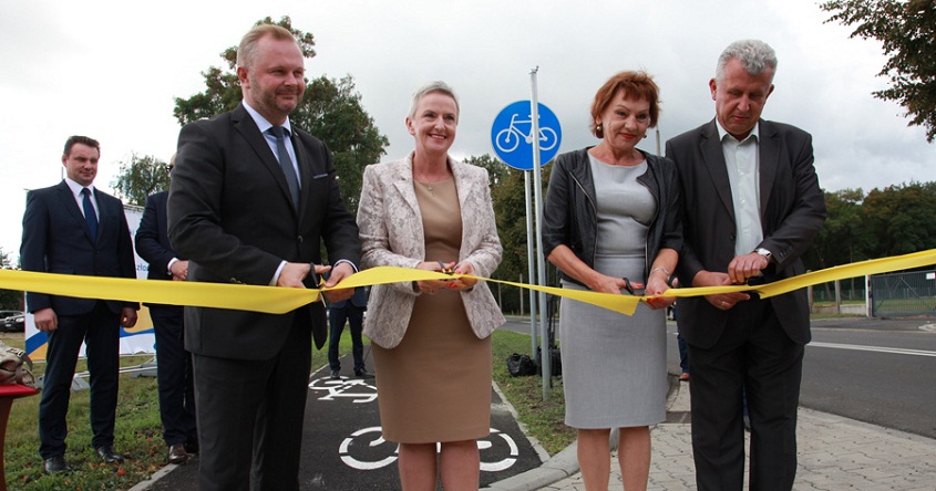 Uroczyście przecięli wstegę: Małgorzata Tudaj, Prezydent Sabina Nowosielska, prezes ZAK SA Mateusz Gramza oraz Arkadiusz Kryś dyrektor Powiatowego Zarządu Dróg. W uroczystości wzięli również udział: przewodnicząca Rady Powiatu Danuta Wróbel, wiceprzewodniczący Henryk Chromik, wicestarosta Józef Gisman, Andrzej Krebs, radny powiatu i dyrektor biura senatora Grzegorza Peczkisa, radny powiatu Rajmund Frischko, a także przedstawiciel wykonawcy robót.